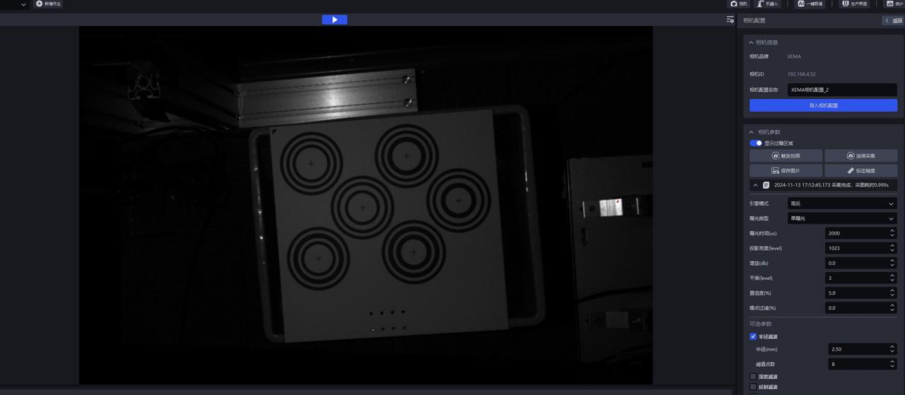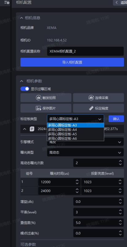 3、选择对应的标定板型号,点击确认,等待标定结果的显示,若精度小于规定值即正常,否则需要外参校正和全面检查。
