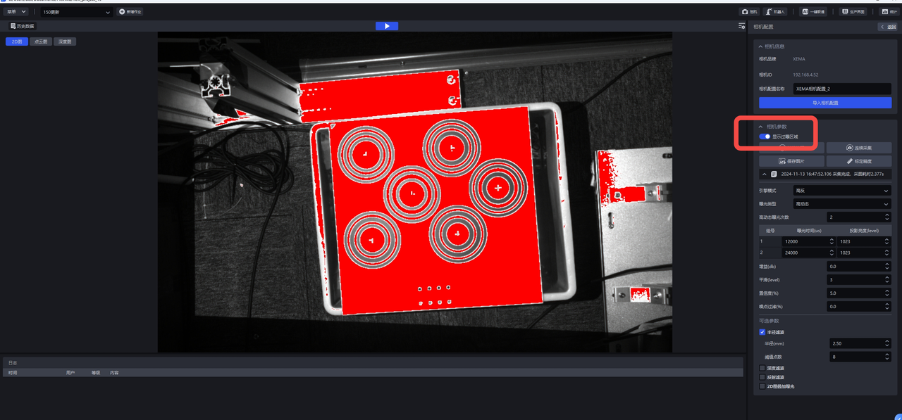 2、查看精度时打开过曝显示不可过曝或过暗,否则影响识别