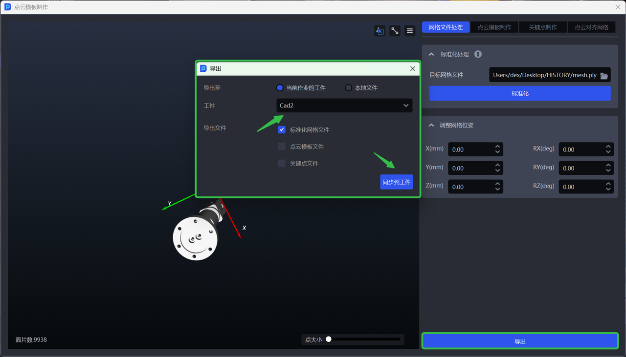 可根据需要调整网格位姿,并在导出的时候同步到当前作业的工件;