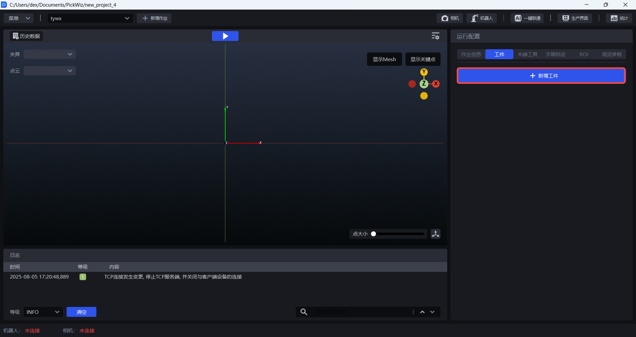 PickWiz:运行于用户工控机上的桌面客户端软件,自动调用 Dexverse 后台接口创建新的训练任务。