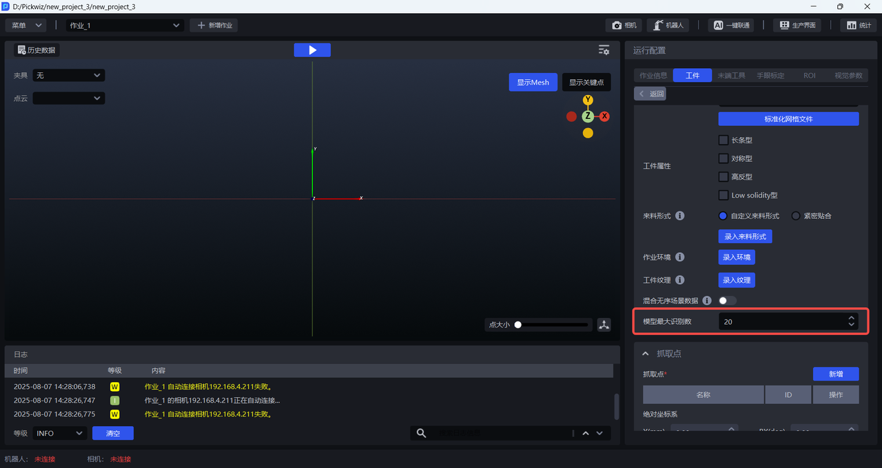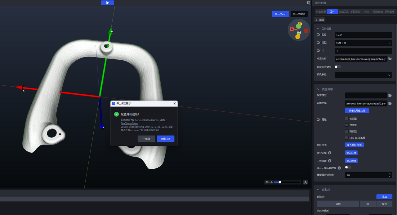 - 旋转 Mesh 模型到合适的姿态(相机视角下的工件姿态), 点击