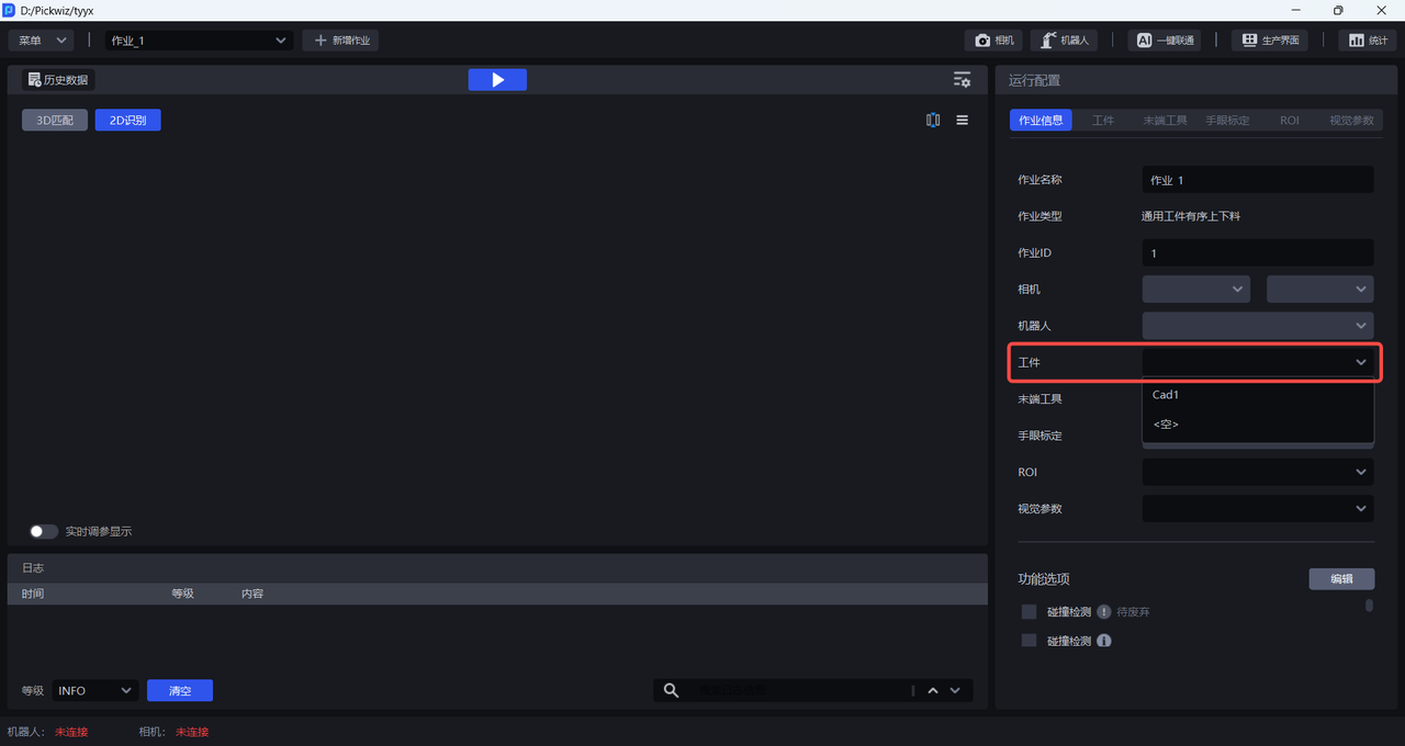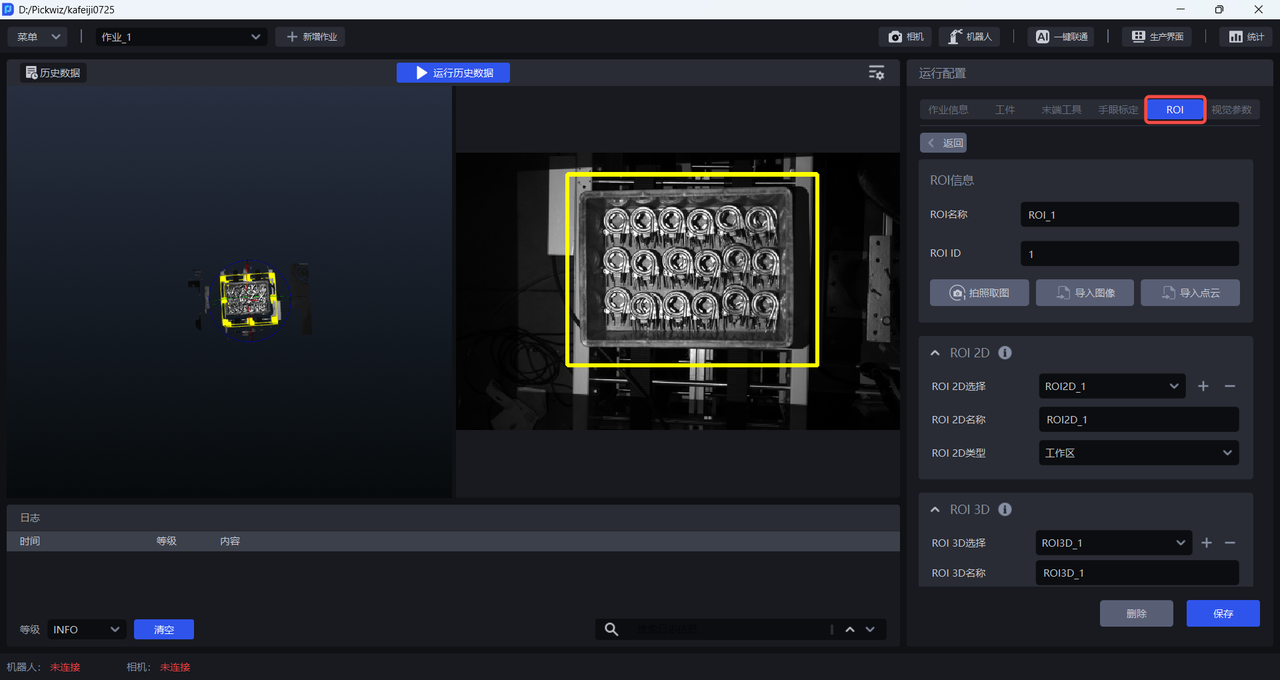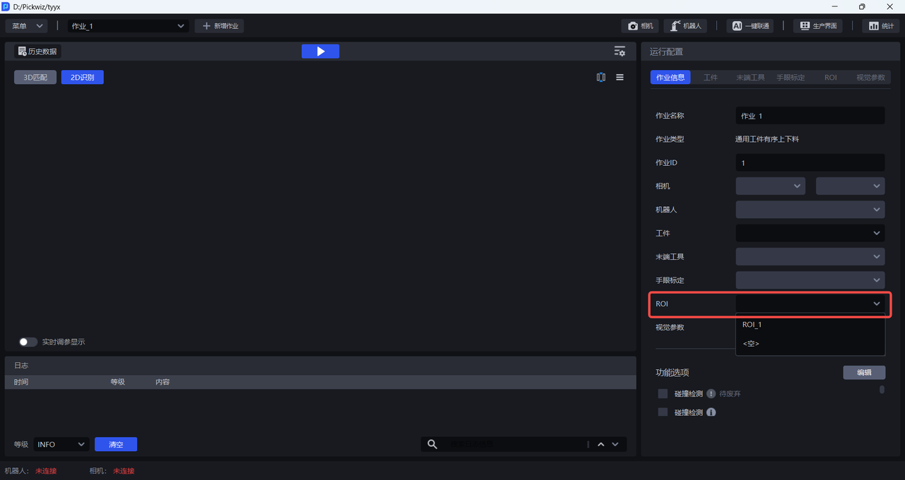 配置好ROI 3D和ROI 2D后,在作业信息中选择对应的ROI 。