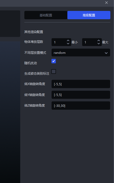高级配置配置堆叠情况,旋转角度根据工件姿态设置。
