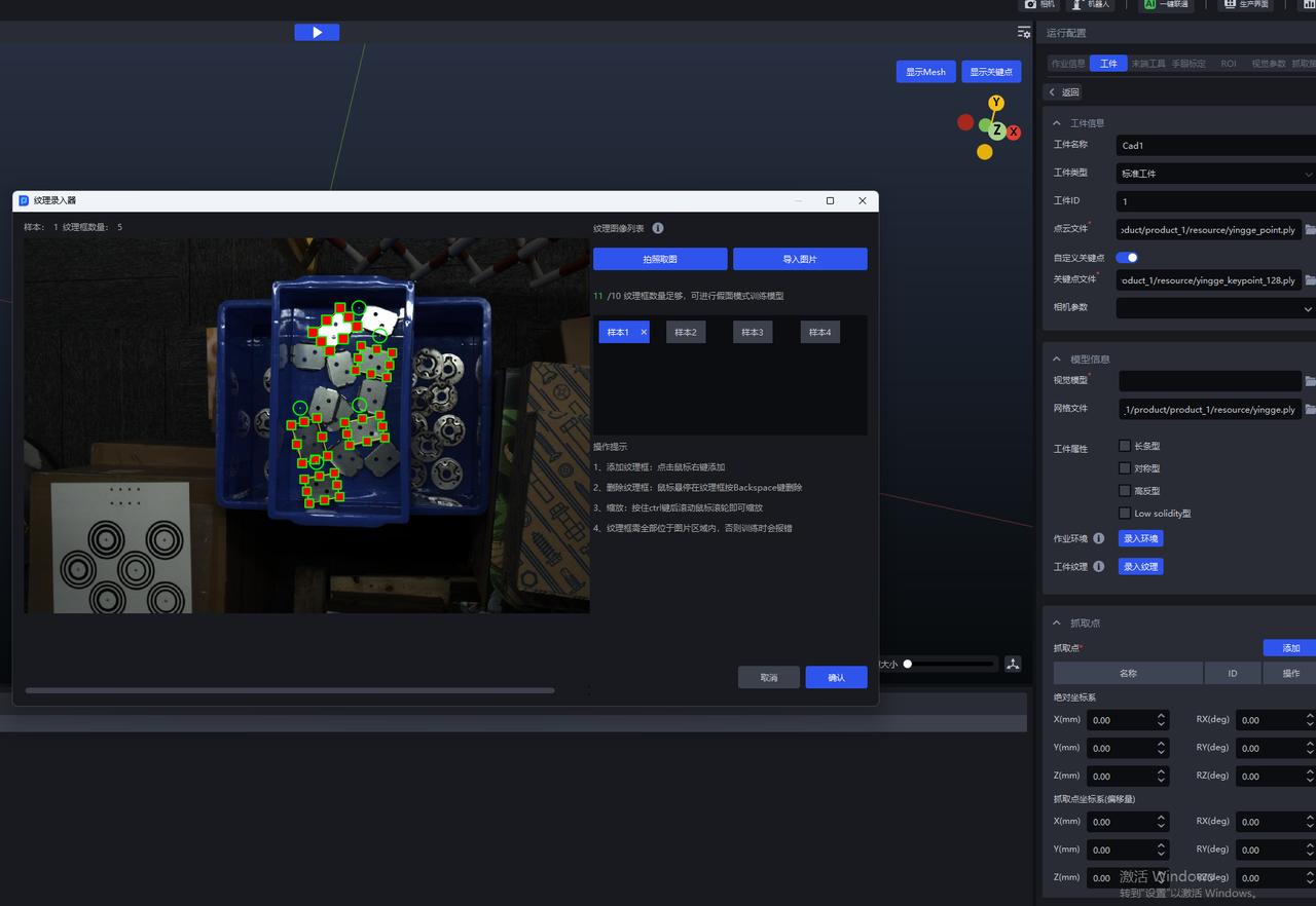 - 获取工件纹理图片后,点击鼠标右键可在图片上添加纹理框;按住