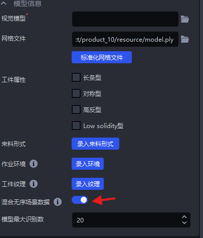 通用/面型工件有序上下料场景中,一键联通训练视觉模型时,可录入来料形式,模拟实际场景下工件的来料方式,这样训练出来的视觉模型对实际场景识别效果更好、鲁棒性更高。若不录入来料形式,训练出来的视觉模型的识别效果可能不够理想。