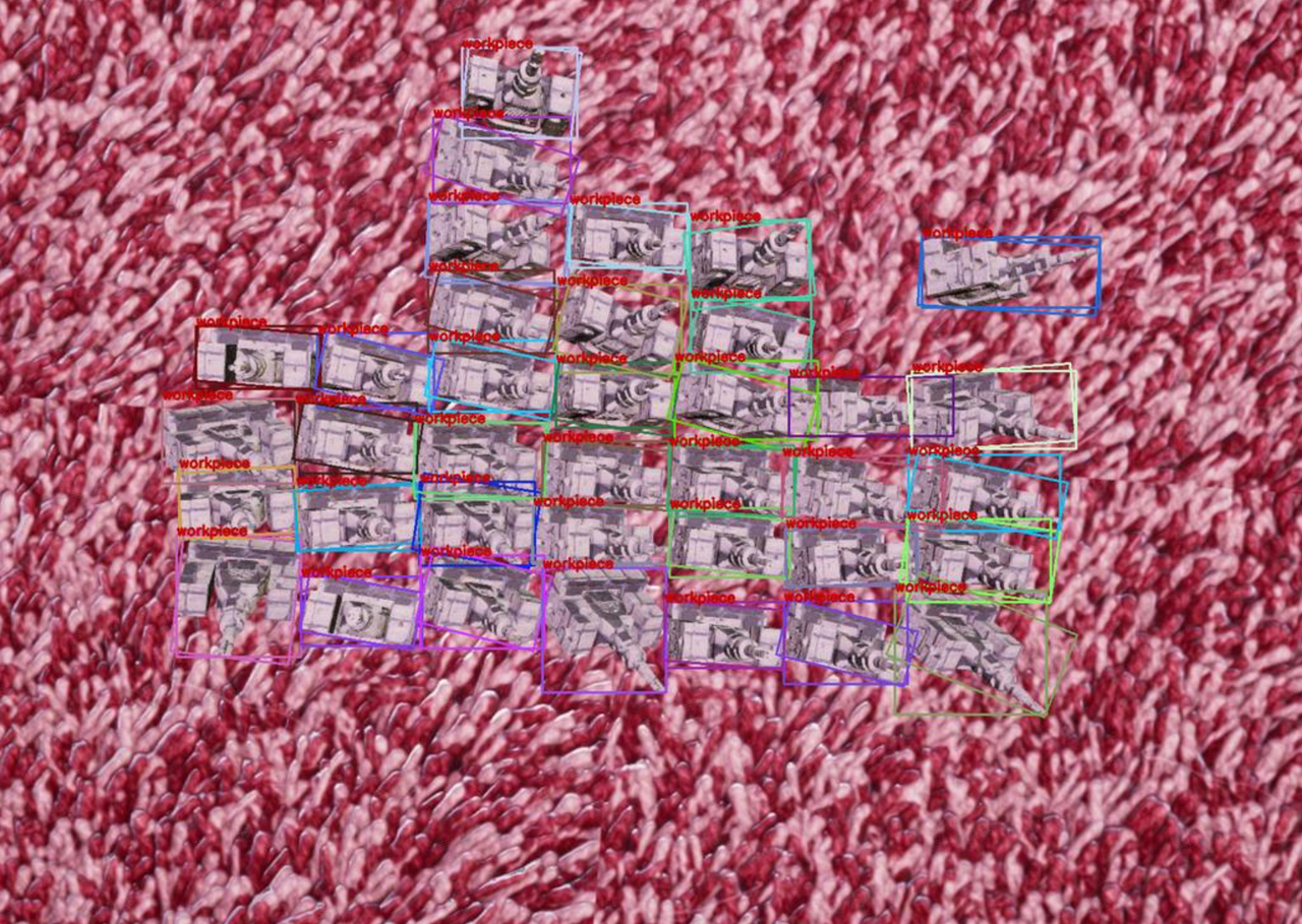 示例:通用工件有序上下料场景中,开启混合无序场景数据,触发一键联通后生成的合成图像既包含有序场景的行列有序,又包含无序场景的姿态不一致。