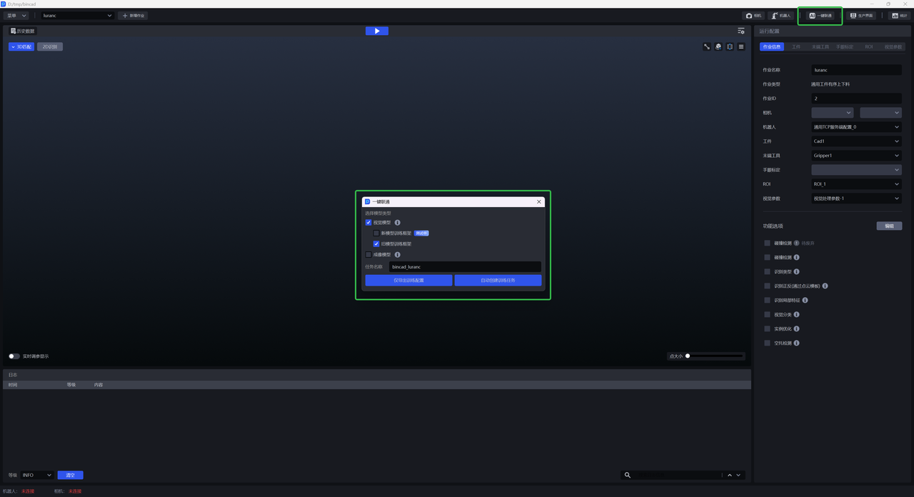 (1)主界面点击 一键联通 ,出现 一键联通 弹窗,勾选视觉模型,如下图所示。