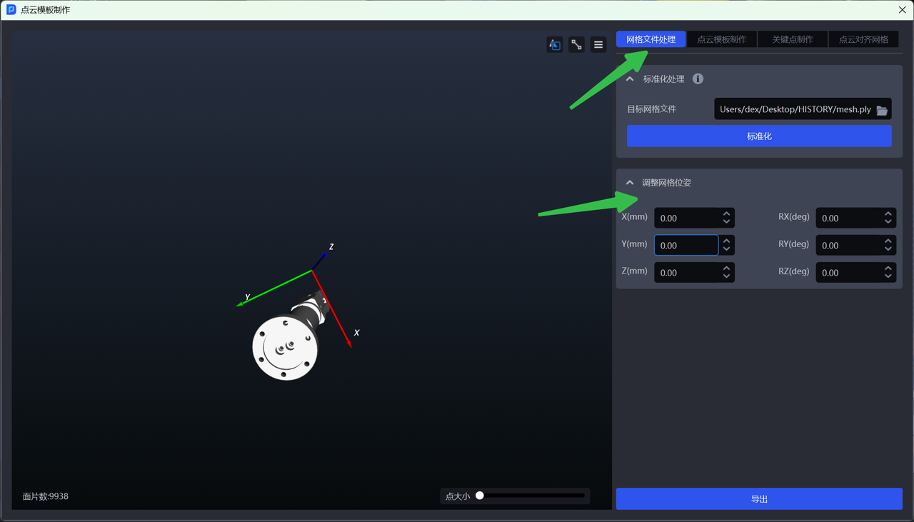 上传网格文件并点击标准化网格文件,目前仅支持 ply 格式的网格文件。