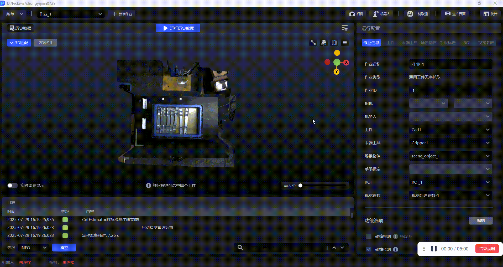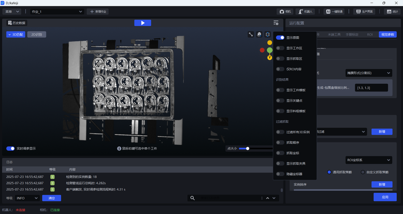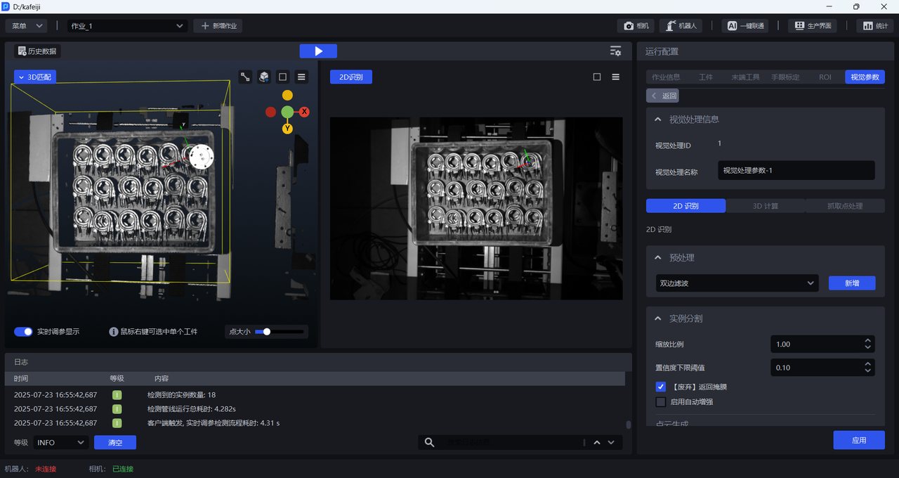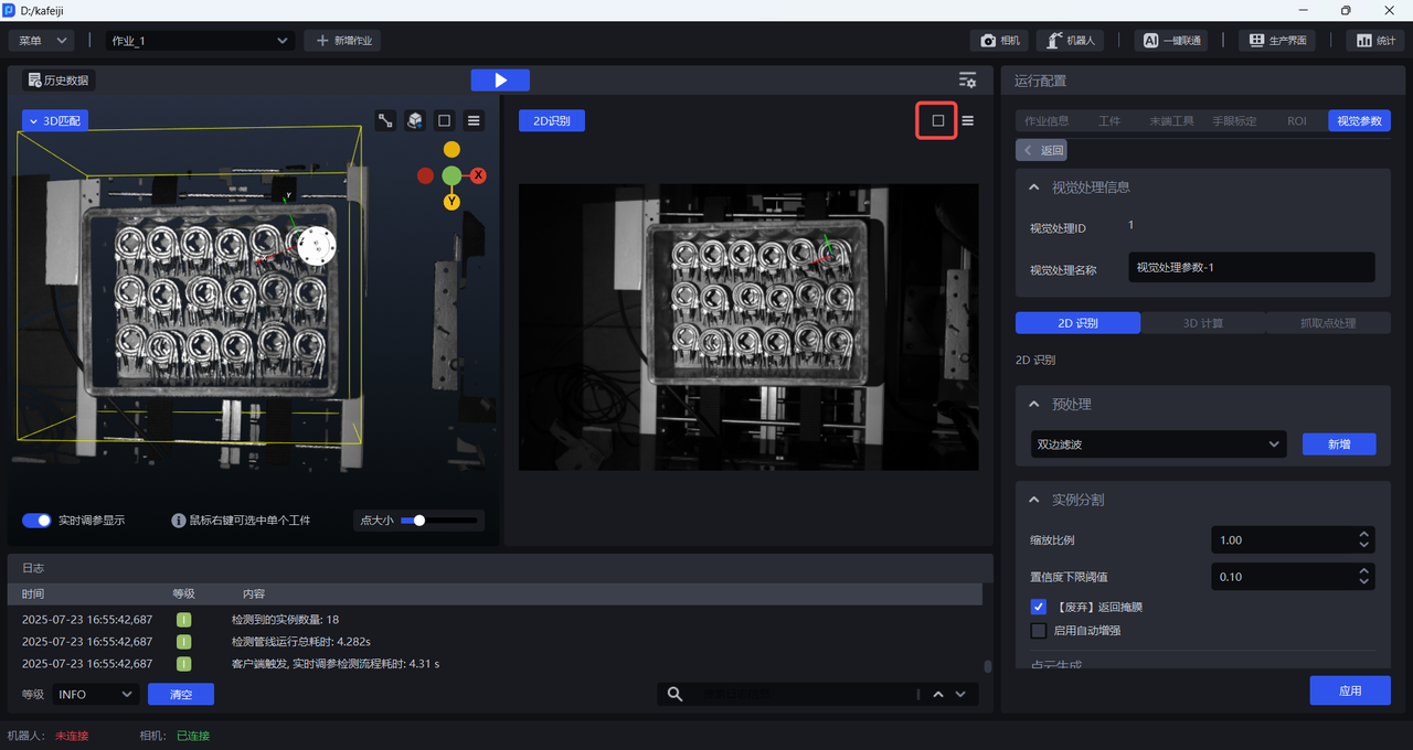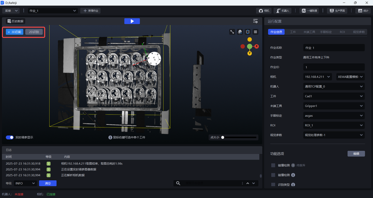 可视化视窗包含3D匹配和2D识别两个视窗。