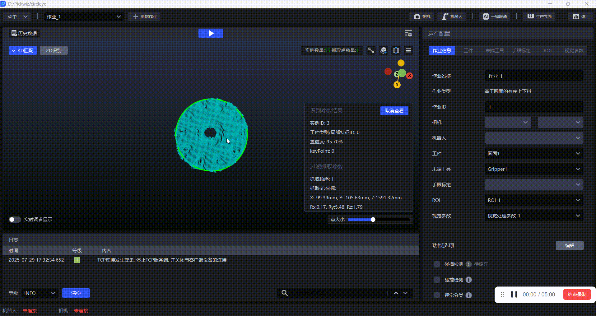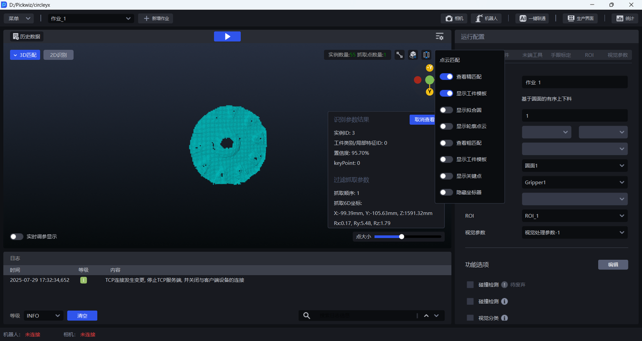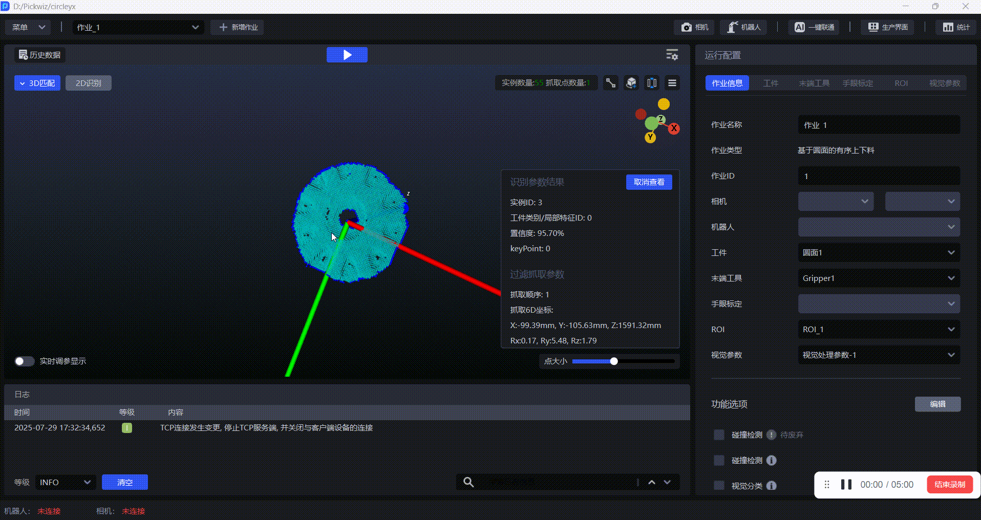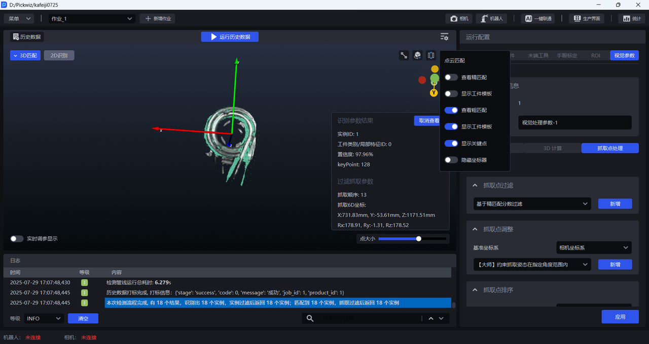 可视化视窗包含3D匹配和2D识别两个视窗。
