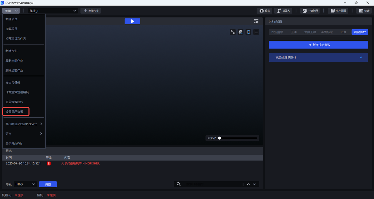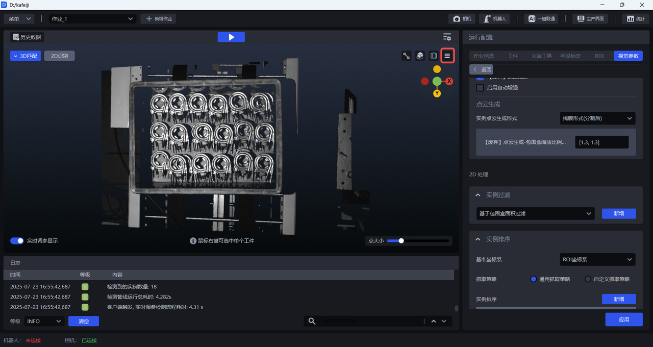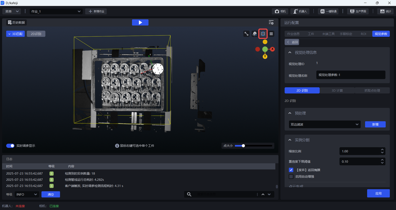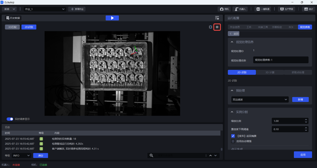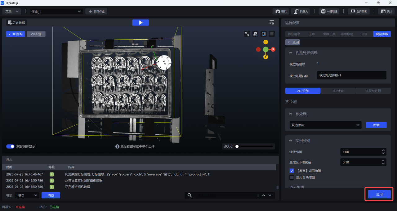 调整视觉参数后,点击 应用 ,或 主界面的 运行按钮 ,在可视化视窗查看调参后的视觉结果。
