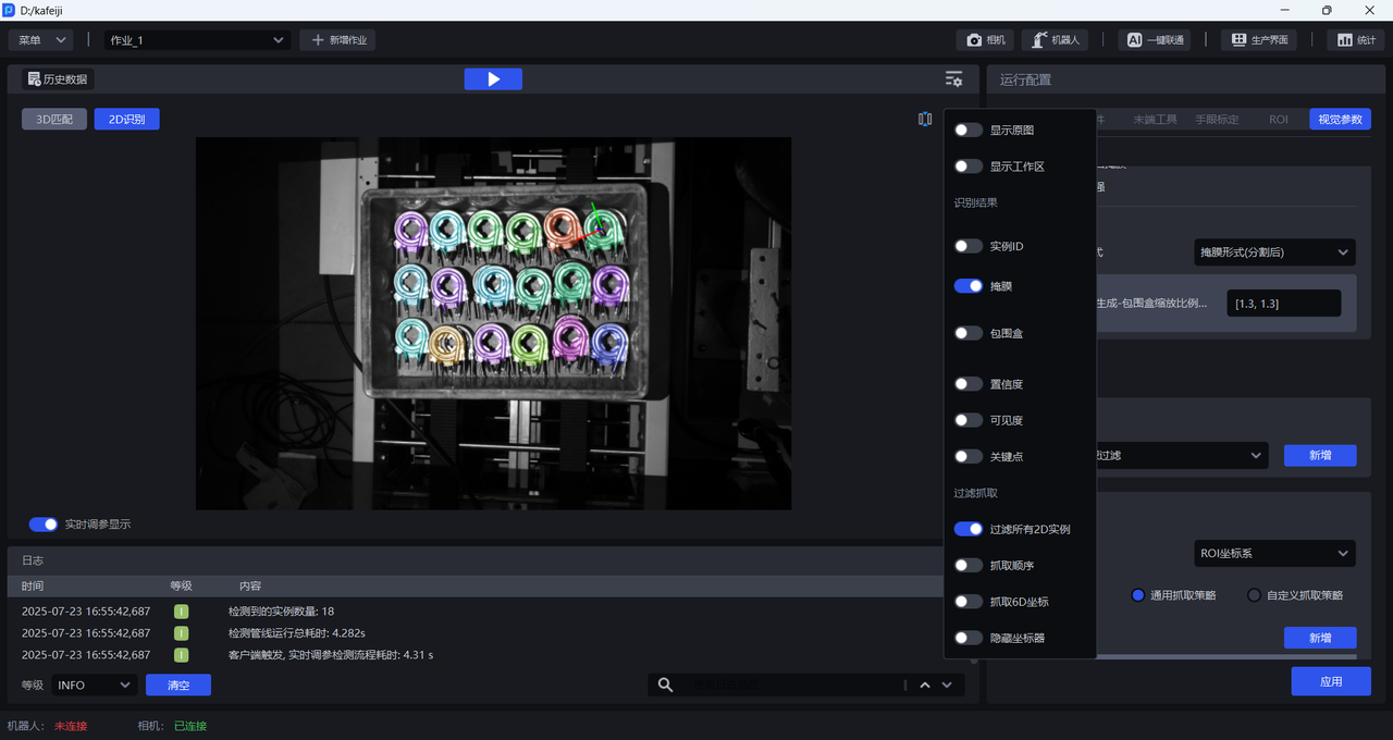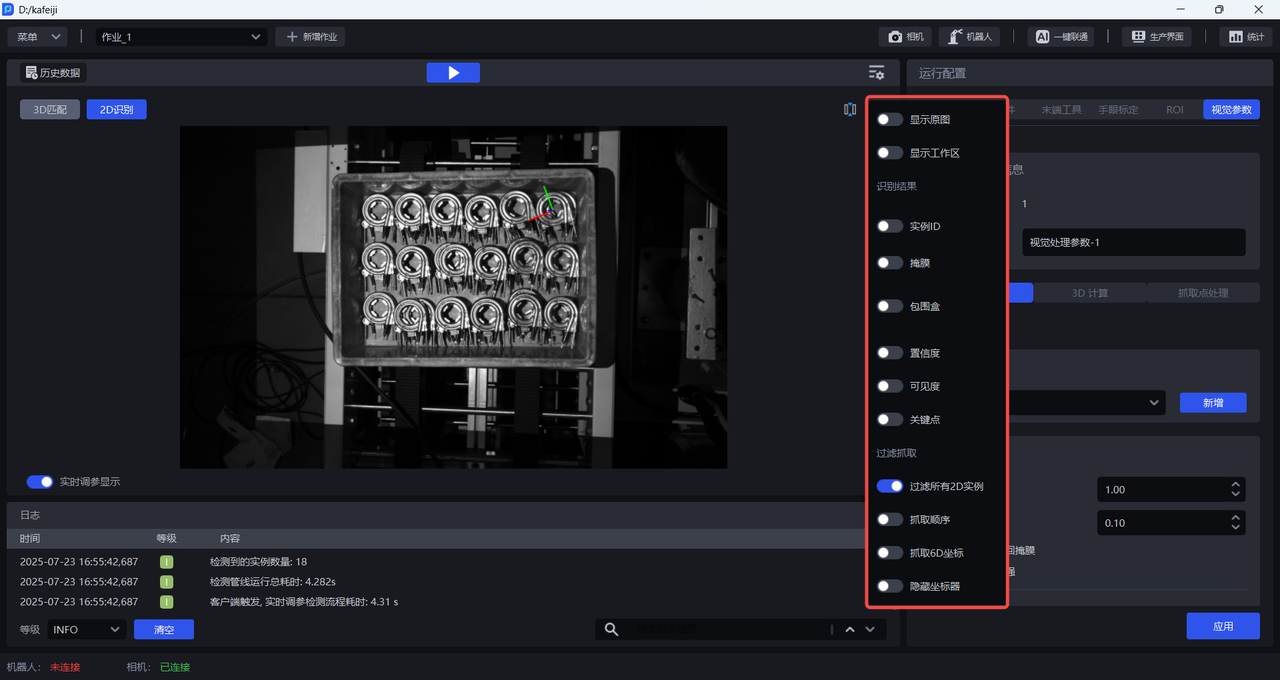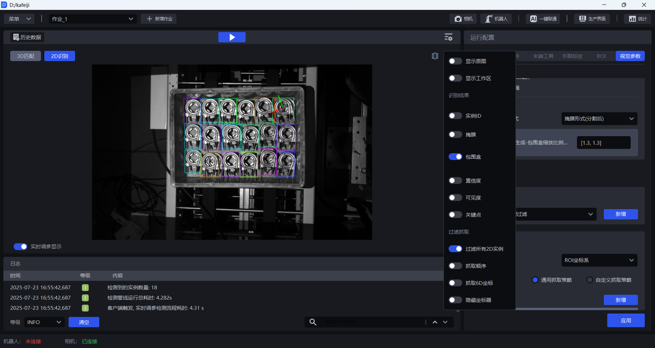 在2D识别视窗点击设置按钮,可自行选择显示的2D视觉结果,如下图所示。