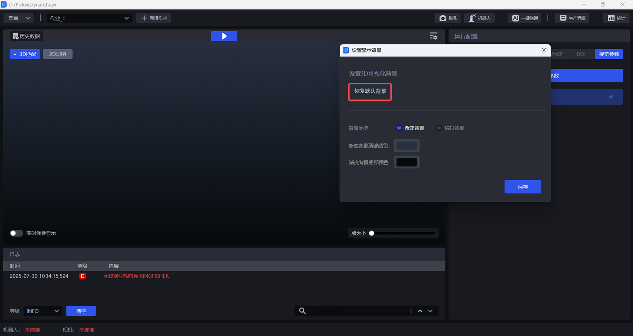 可修改3D匹配视窗的背景颜色,便于观察场景点云。默认的视窗颜色是深灰色,若场景点云的颜色较深,则难以观察场景点云,因此可修改视窗的背景颜色。