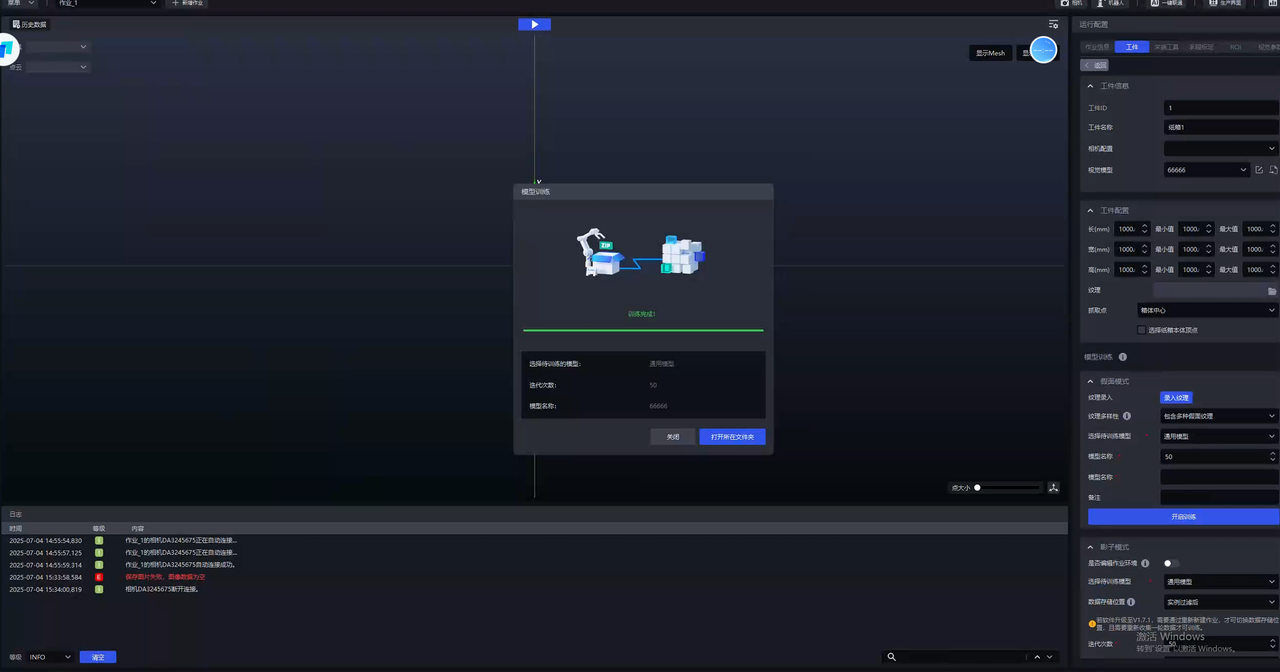 在工件界面,检查视觉模型是否更换为最新训练的深度学习模型