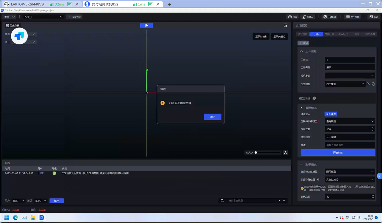目前仅拆垛场景下支持在端侧(工控机)通过 PickWiz 进行假面模式训练,其他场景暂未支持。