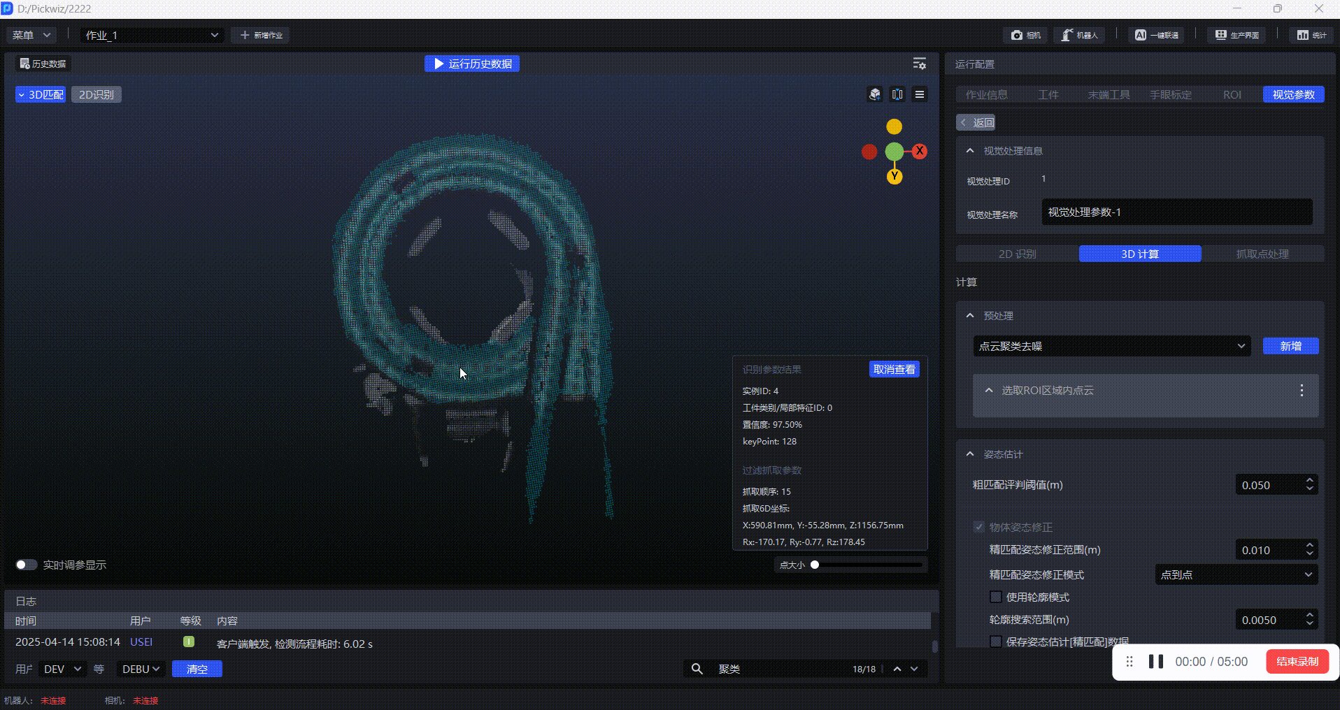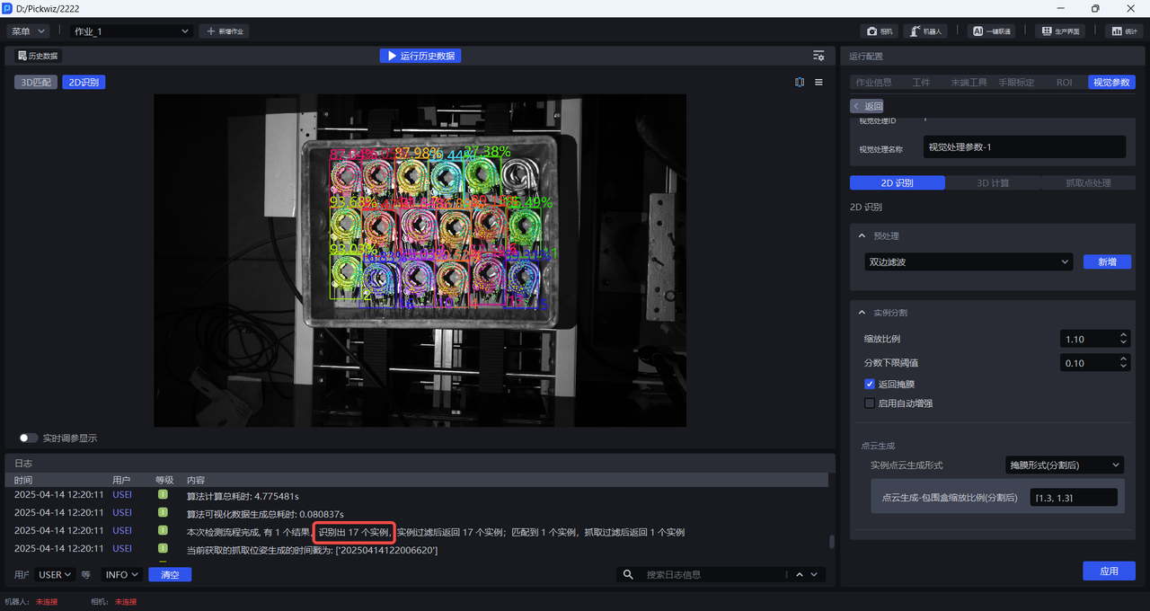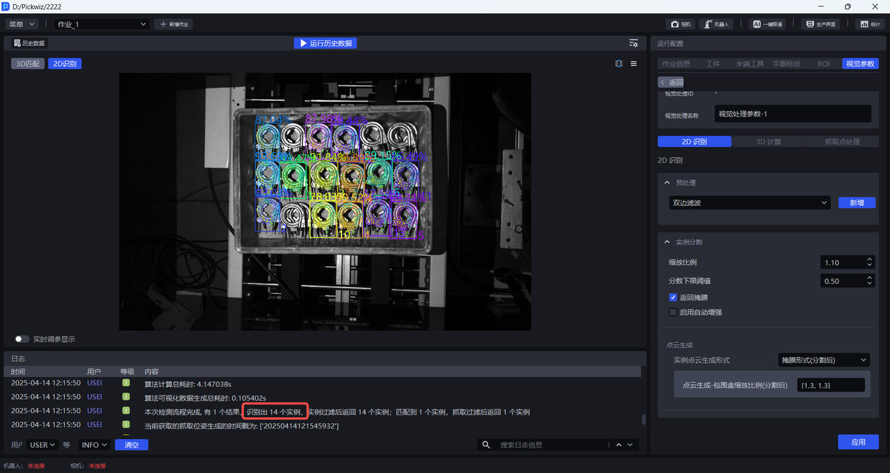 - 3D计算:计算实例在相机坐标系下的姿态并生成抓取点