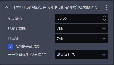 | 抓取姿态指定轴 | 指定抓取位姿的某个轴计算夹角 | Z轴 | X/Y/Z轴 | / |