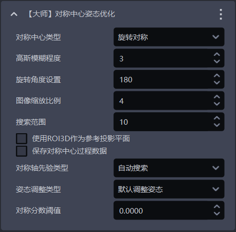 | 对称分数阈值 | 对称分数小于该阈值的对称结果为异常结果,设置0时不过滤 | 0.0 | \[0.0, 1.0\] | / |