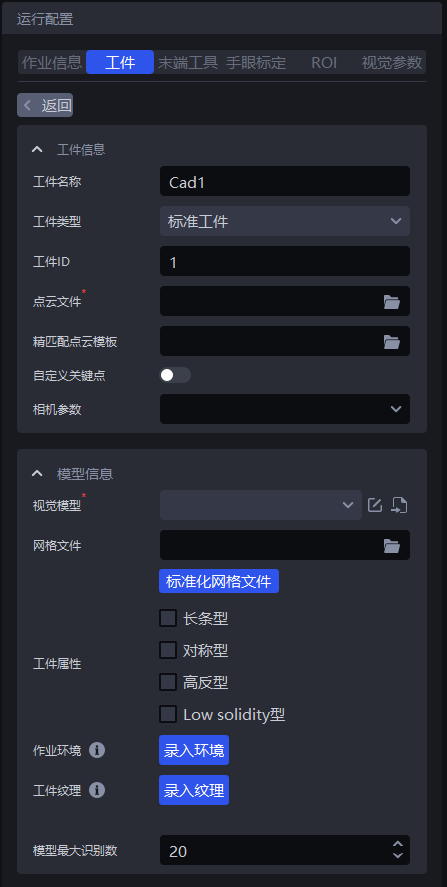 工件名称可自定义,工件类型默认为标准工件且不可更改,工件ID可自定义,用于机器人抓取时自动切换工件