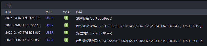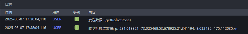 若在线获取坐标为是,PickWiz 会向机器人发送请求位姿指令,机器人将向 PickWiz 发送当前机械臂末端位姿,机器人初始姿态会更新当前的机械臂末端位姿,如下图所示。