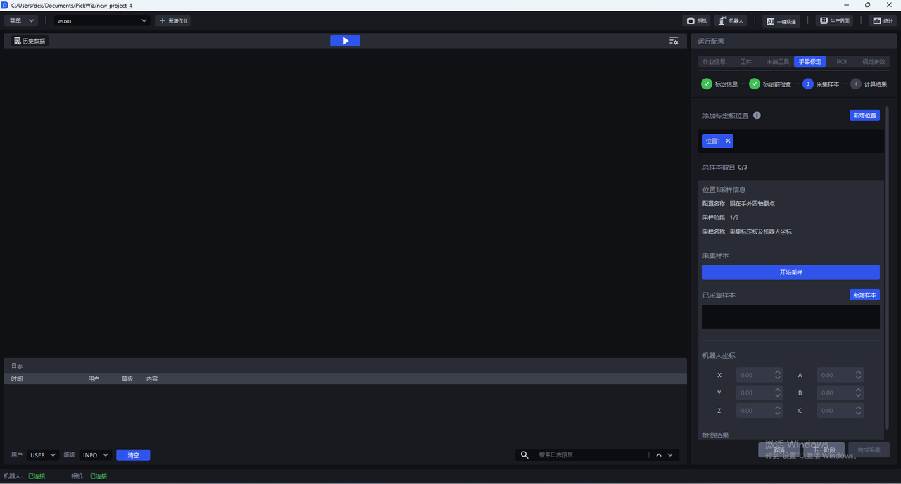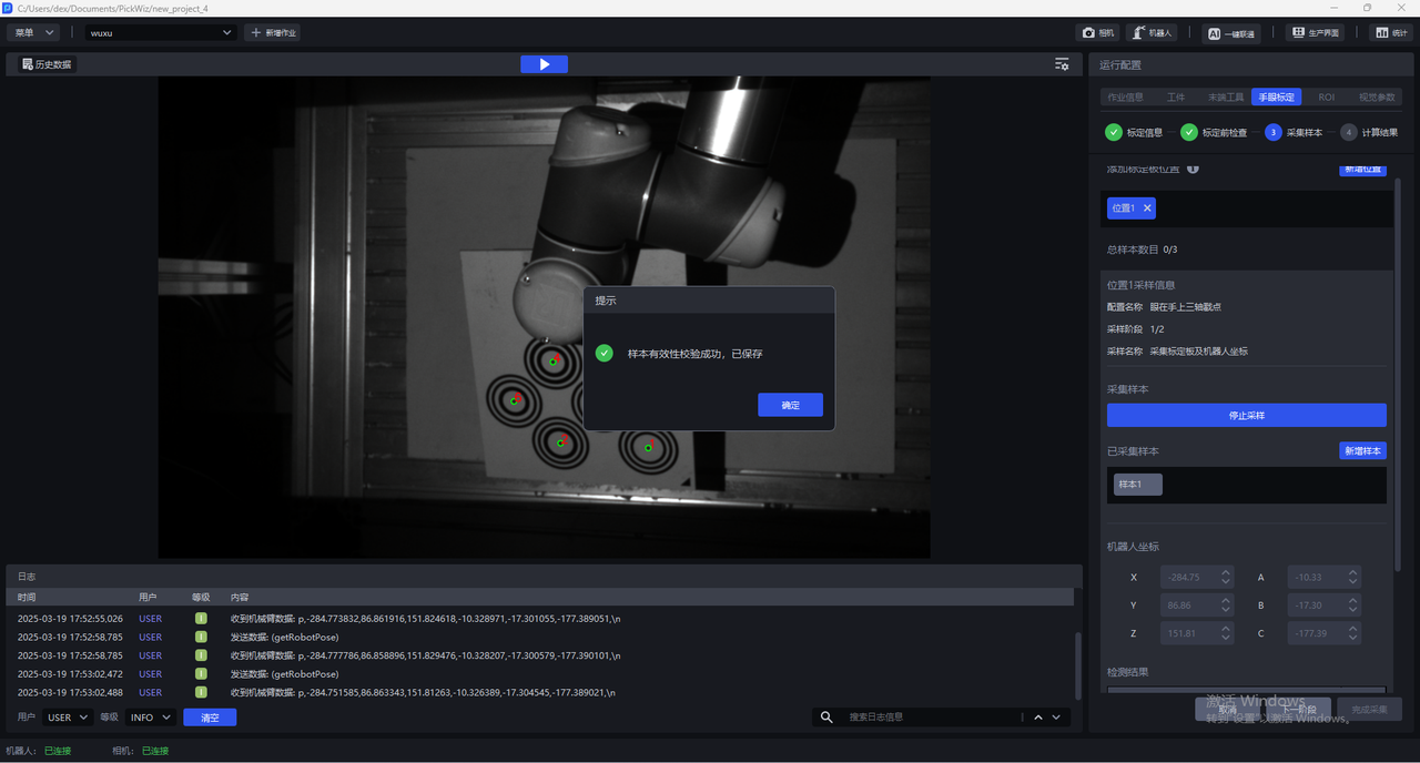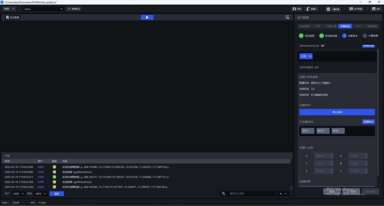 在标定采样阶段,系统默认采用单一位姿校准模式,但在特定应用场景中可扩展为多位置标定策略,提升了复杂工况下的标定鲁棒性与系统适应性: