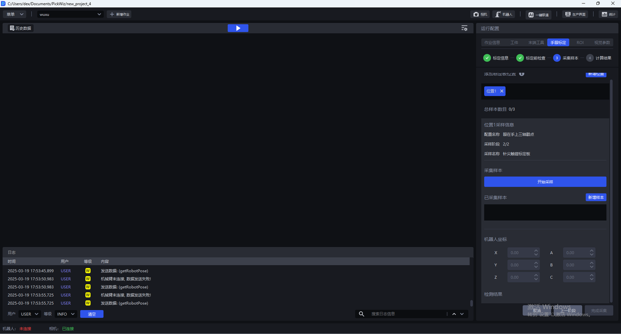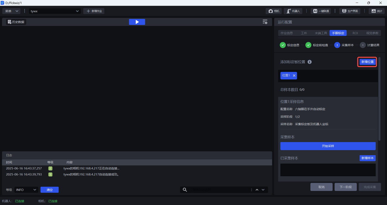 (2)点击新增样本,采集戳点时的机器人坐标。
