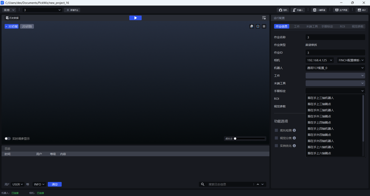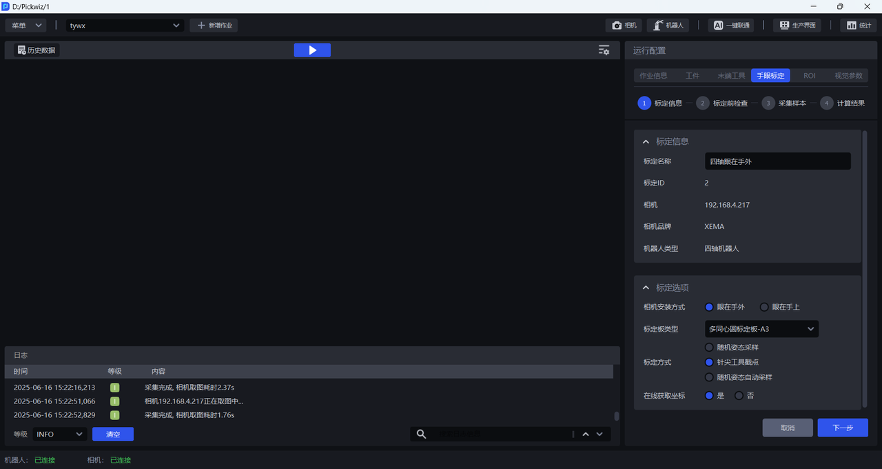 (3)完成相机连接和调参并配置到作业信息