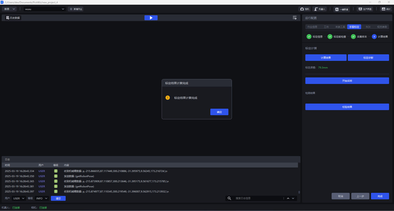 点击 计算结果 ,Pickwiz会根据已采集样本计算标定结果,若标定误差不满足要求,请进行 标定结果检查与分析。