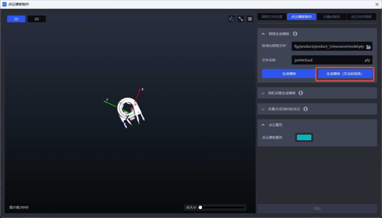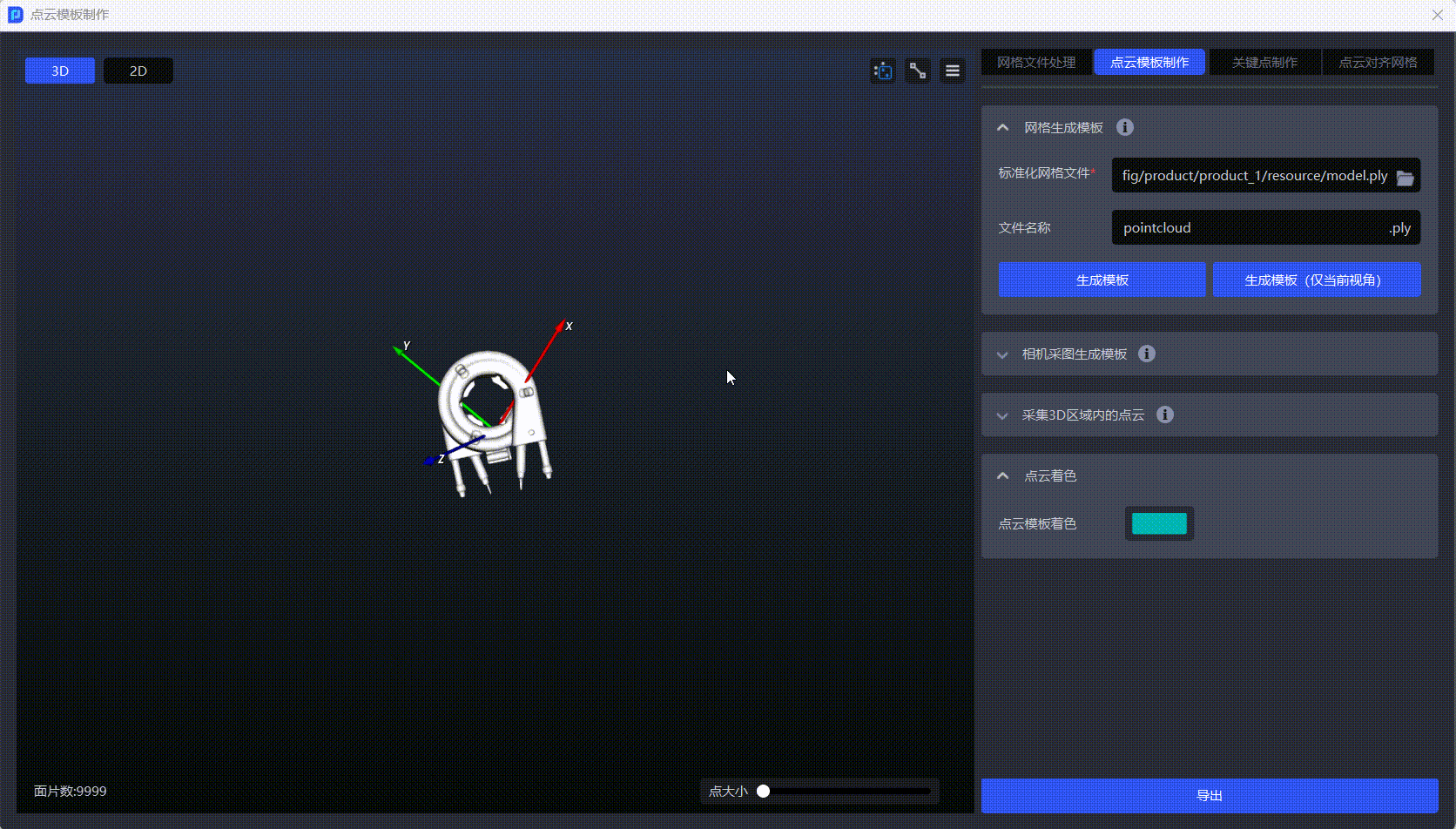 对导入的标准化网格文件进行降采样,一键生成点云模板,生成方式有两种: