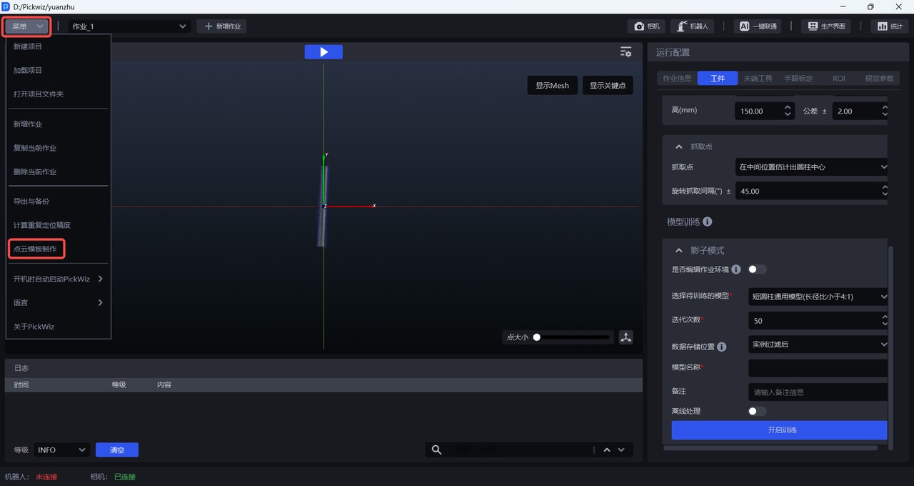 若通用的视觉模型无法识别工件,需要进行一键联通训练,网格文件必须经过标准化处理,才能保证最终视觉模型的训练效果。