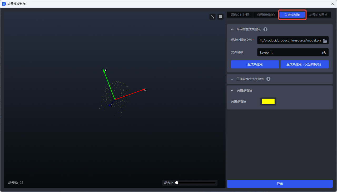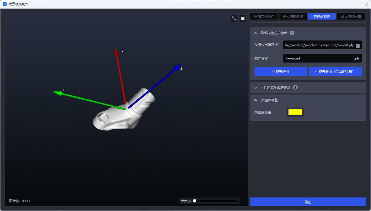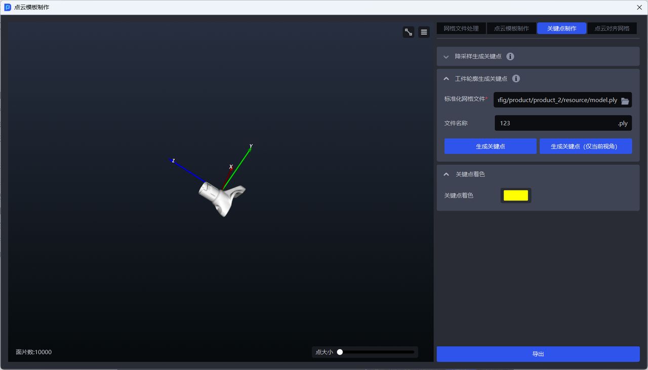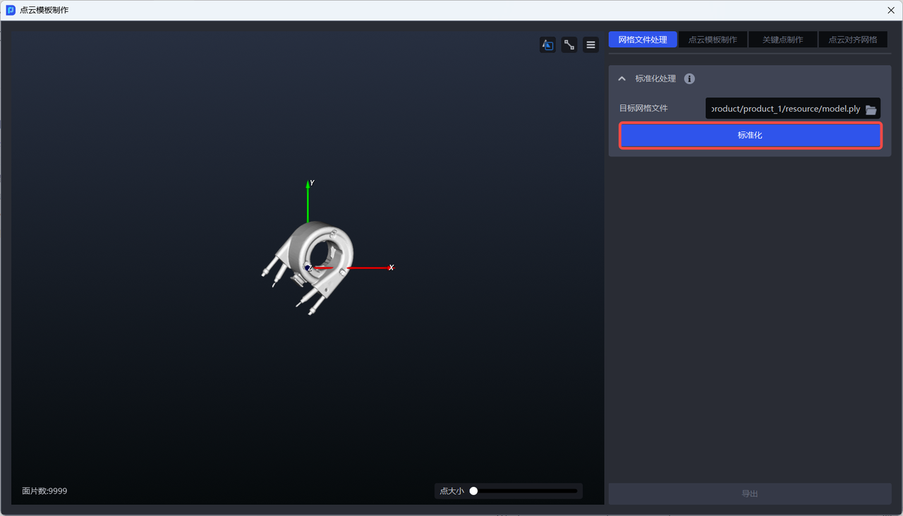 - 如需制作点云模板或将点云模板对齐网格,应导出标准化后的网格文件至本地。