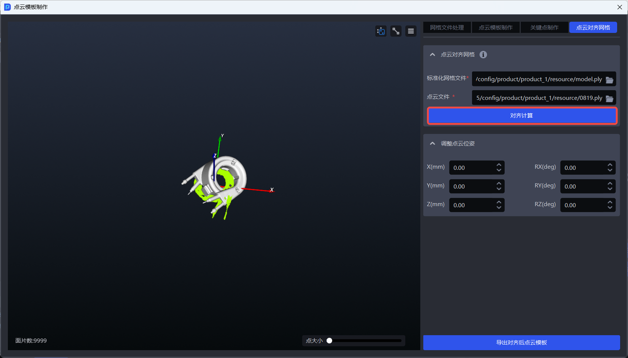 点云对齐网格:该网格文件必须经过标准化处理,才能正常进行对齐。