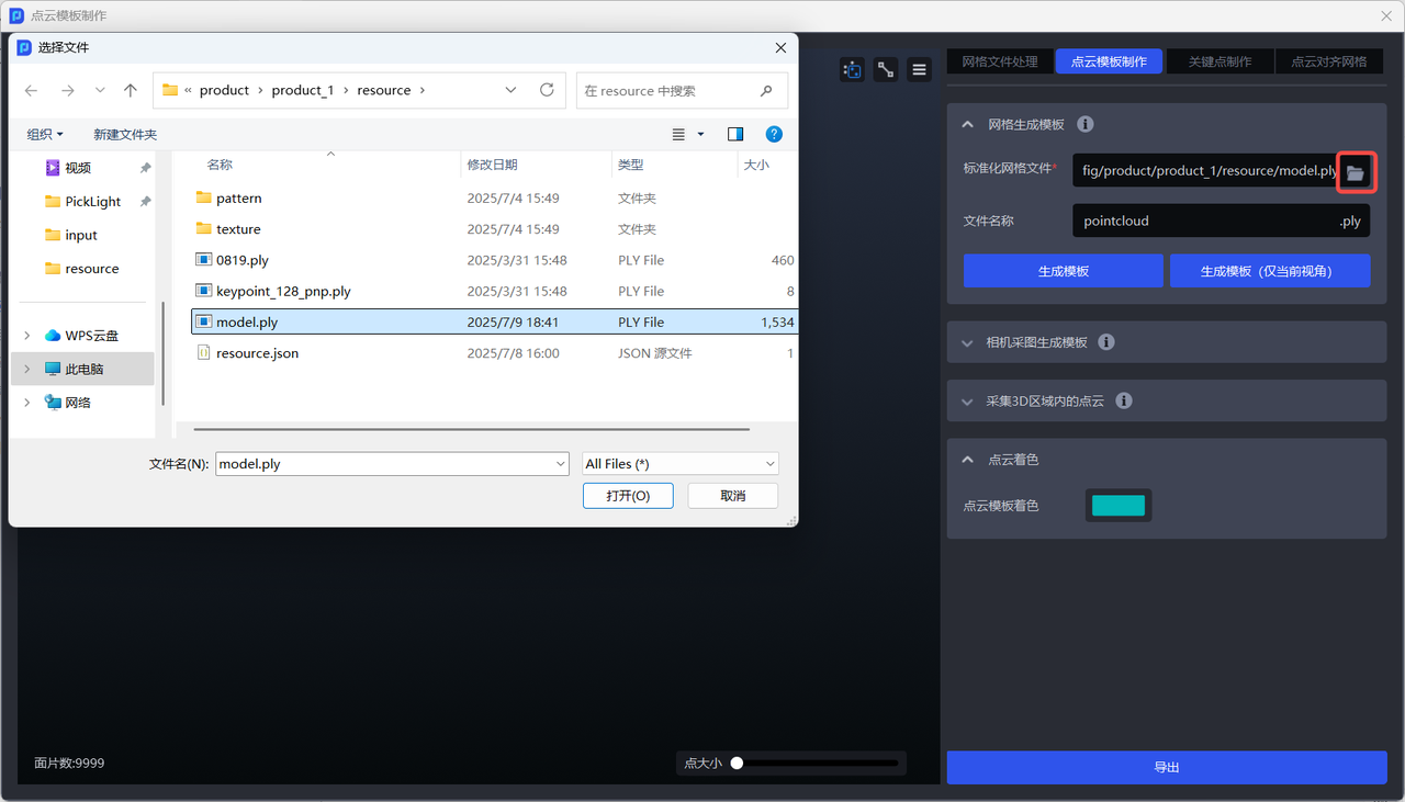 PickWiz 的点云模板制作功能包括网格文件处理、点云模板制作、关键点制作、点云对齐网格四部分,操作方法如下。