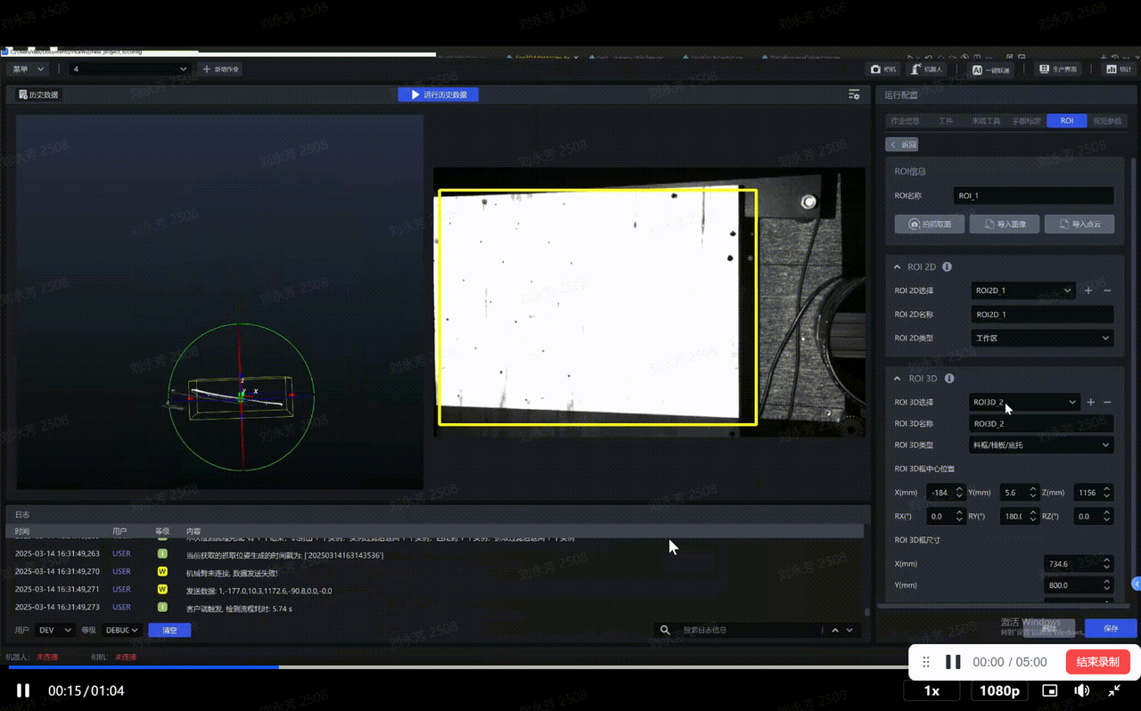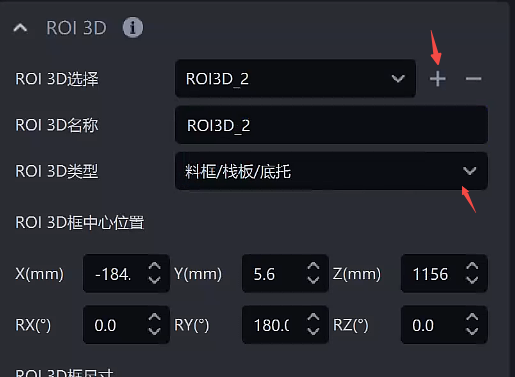 - 在ROI界面创建一个ROI,调整ROI 3D框将目标物体框全,然后新建一个ROI3D_2,选择ROI 3D类型为 料框/栈板/底托