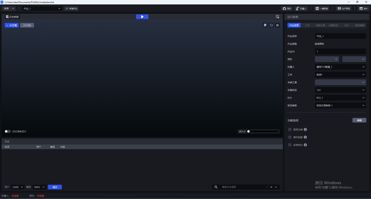 在作业信息选择好各配置项后,在视觉参数-3D计算-底托检测调整参数