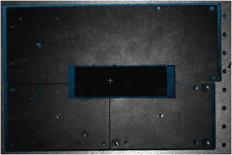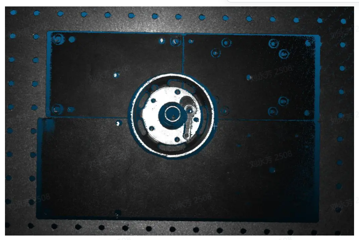 检测金属、铝箔表面、反光膜片、光滑表面的物品时,镜面反射会造成局部反射光过强,从而失去物体原有信息。在实际操作环境中,根据物体的层次可选择曝光数,如下图所示,有工件、黑色版、带孔平台,这时我们可选择曝光次数为 3。