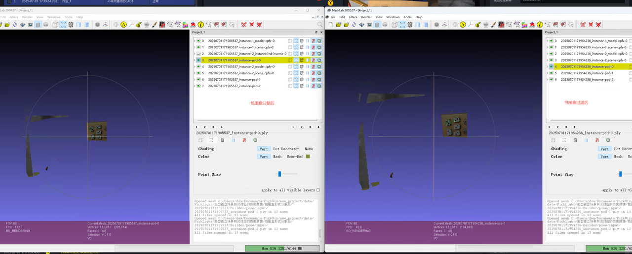 降采样的点间距取值越大,降采样后的点云数量越少,实例分割计算速度会加快,但精度可能下降