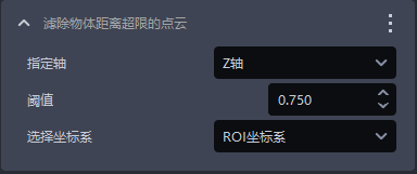 | 阈值 | 滤除指定轴的点云阈值,指定轴方向上与工件点云的距离大于该阈值的点云将被滤除 | 0.75 | [0, 1] | m | 根据实际场景调整阈值,阈值越大,滤除的点云越少;阈值越小,滤除的点云越多 |