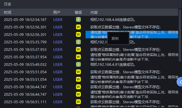 如需复制日志内容,右键点击日志内容后点击“复制”。如希望清空日志内容,请单击下方蓝色清空按钮。