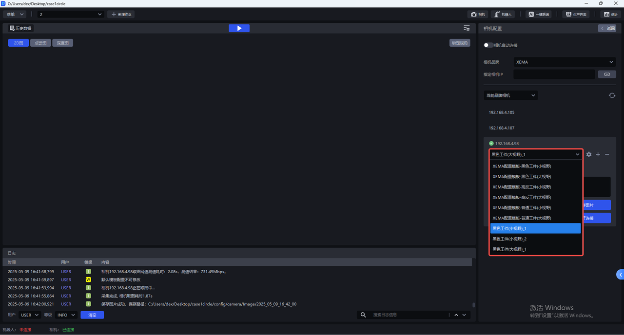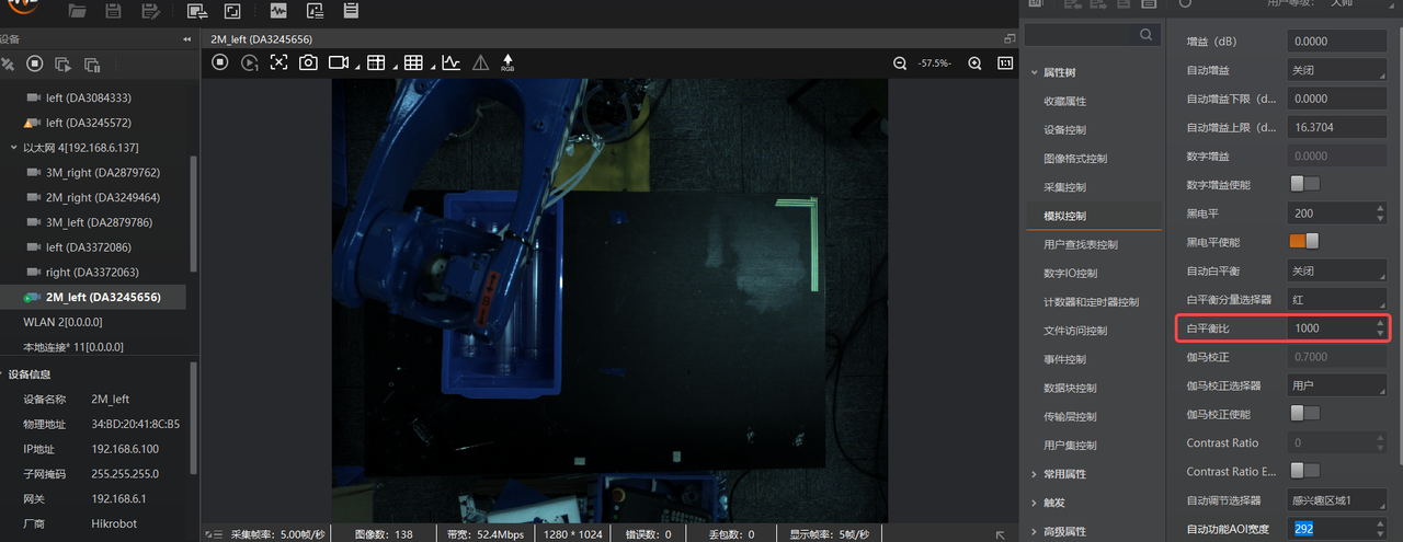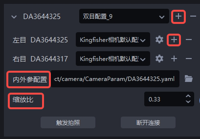 此处需记录相机的序列号,若相机名称为2M_right(DA3249464),则序列号为DA3249464,后面有用