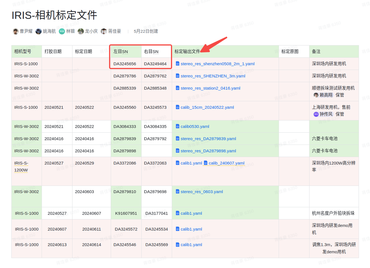 根据相机型号和序列号(左右目SN)找到对应的内外参标定文件 KINGFISHER-相机标定文件,如下图所示,下载最新版本的标定文件。