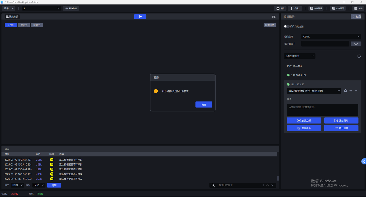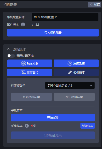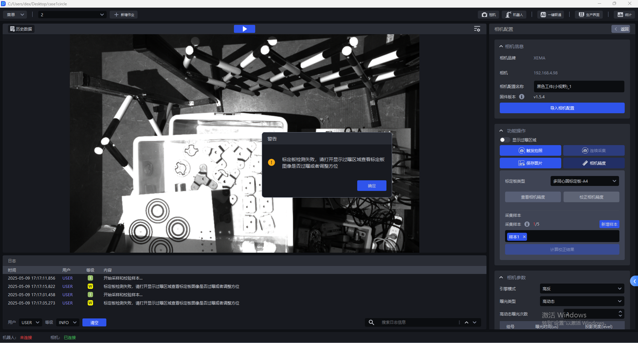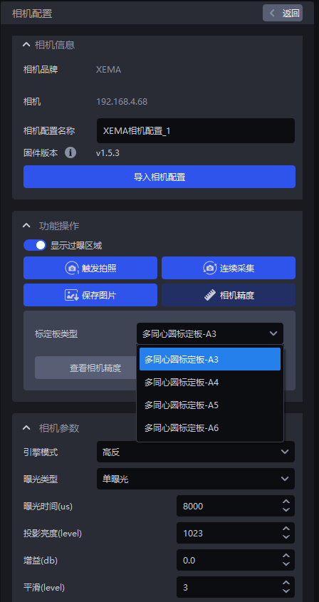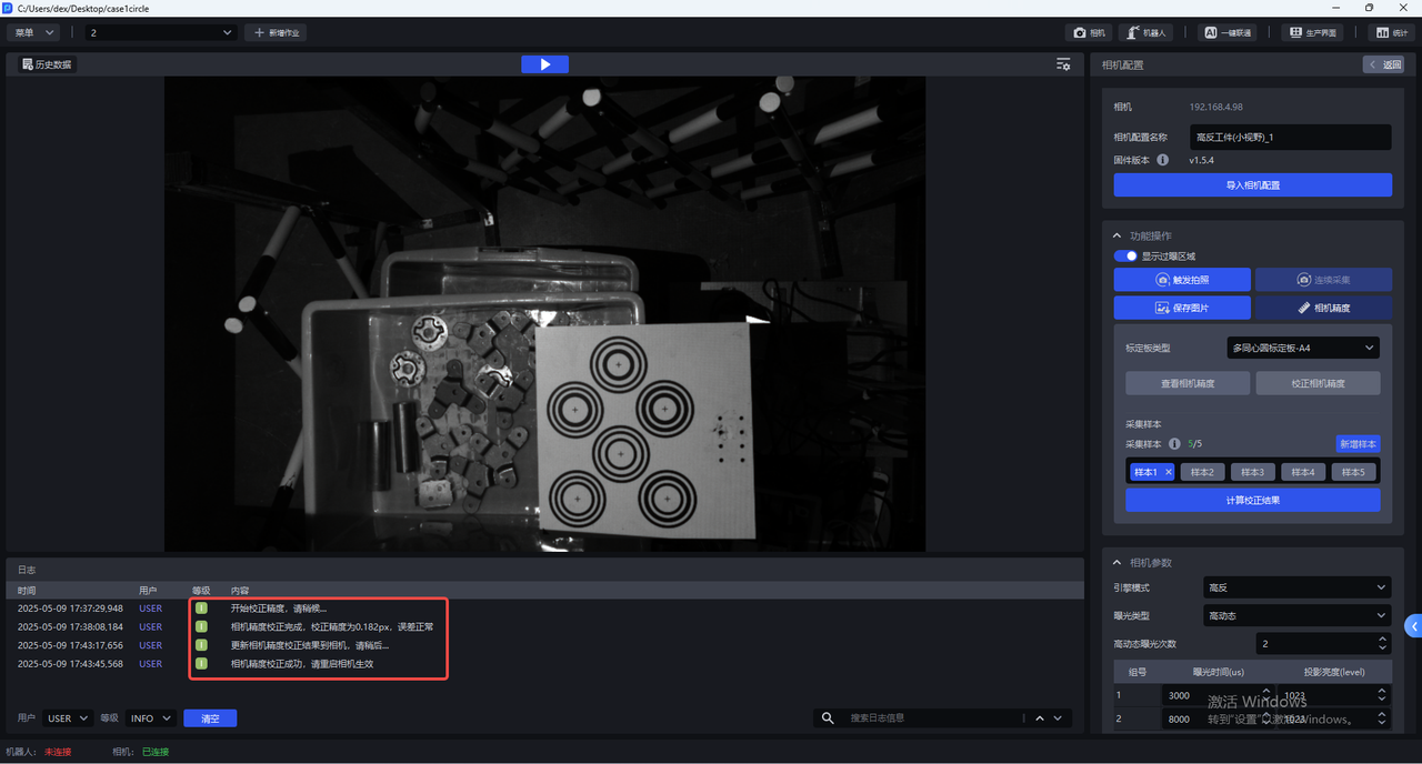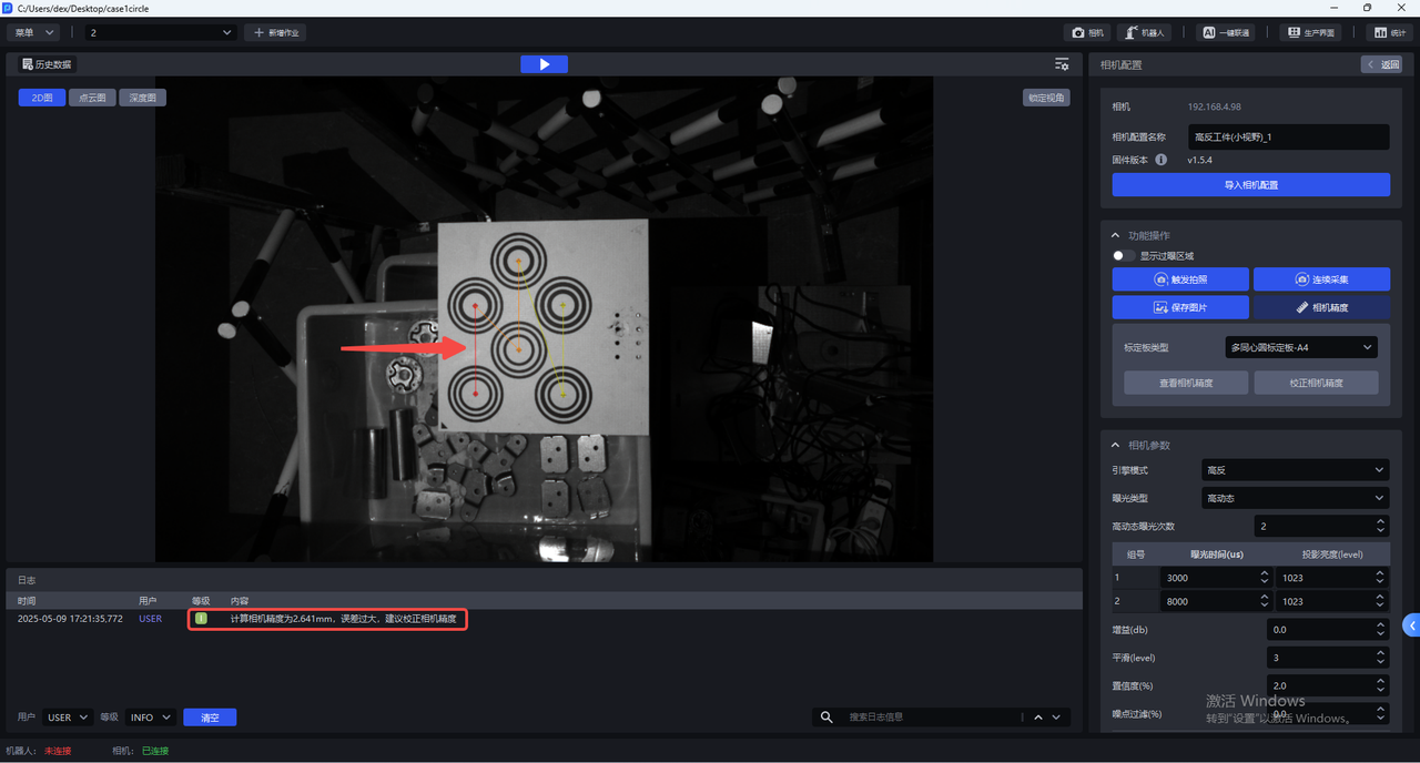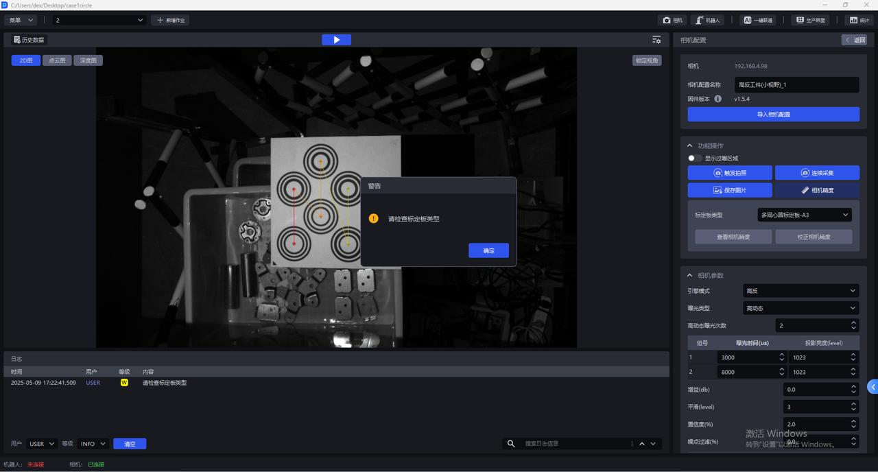 如选择覆盖当前的相机参数配置,会将相机精度校正结果更新到相机,需重启相机才能生效