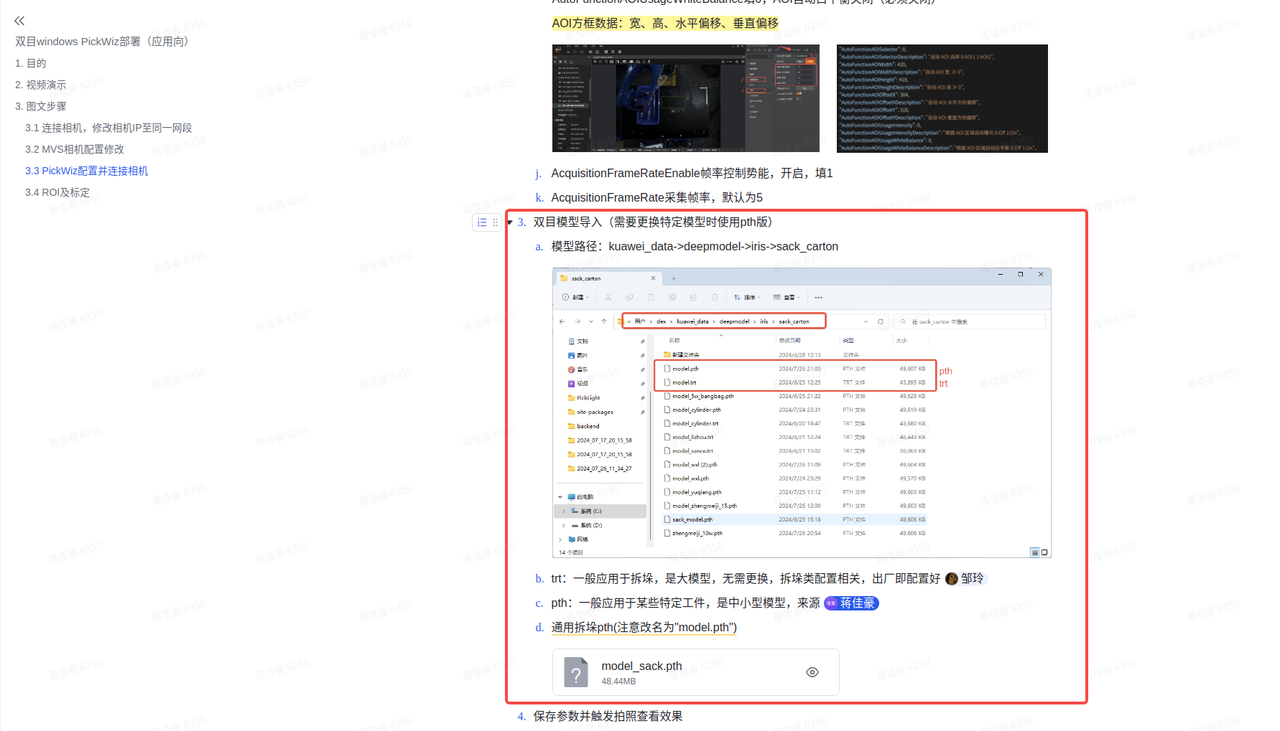 获取到双目模型pth文件后,在“kuaweidata/deepmodel/iris/sack_carton/”目录下,放入pth文件并重命名为model.pth,获取途径查看 双目windows PickWiz部署(应用向)(内部)3.3章节