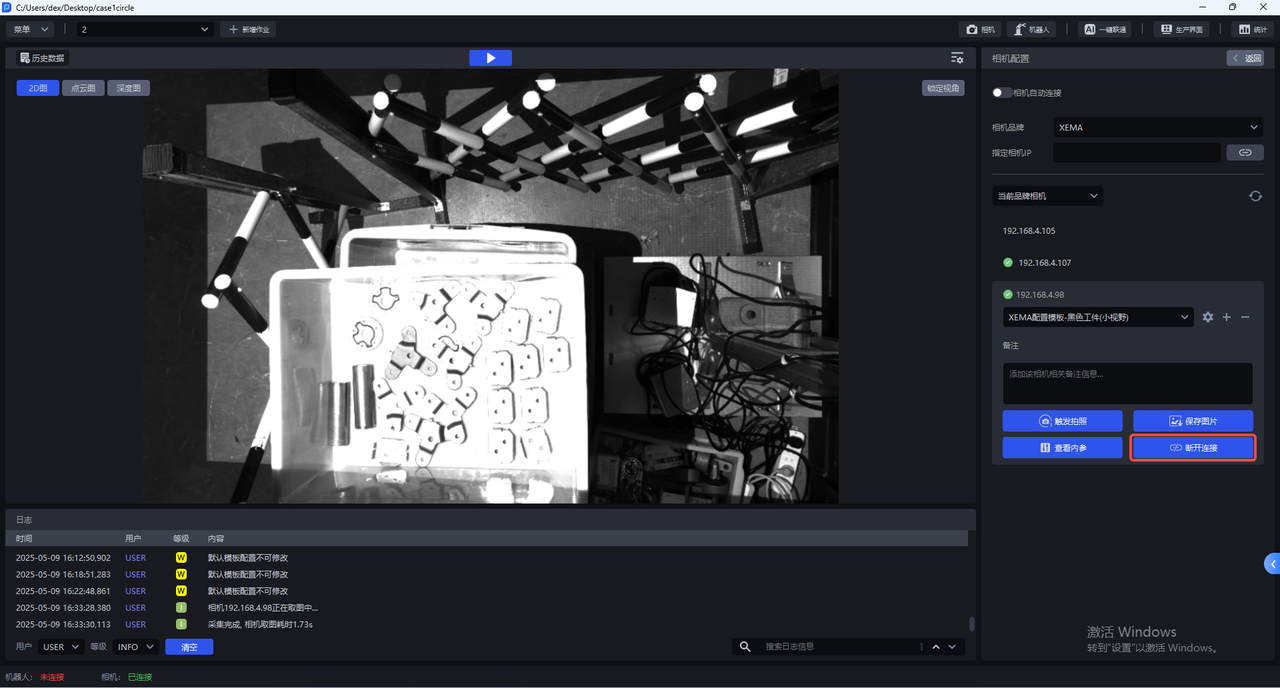 必做流程:修改相机IP至可连接 -> pickwiz连接相机并配置可出点云 -> 红线图校验(相机精度)