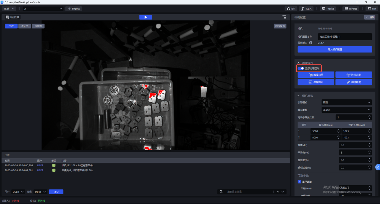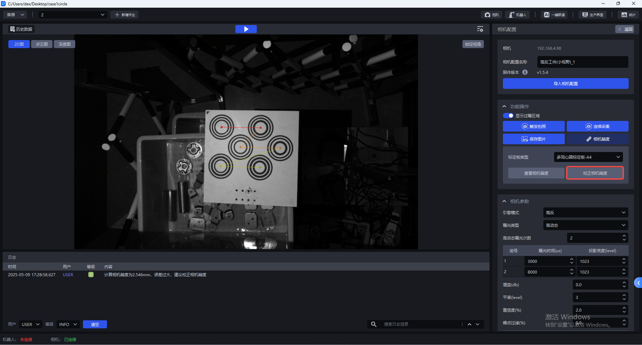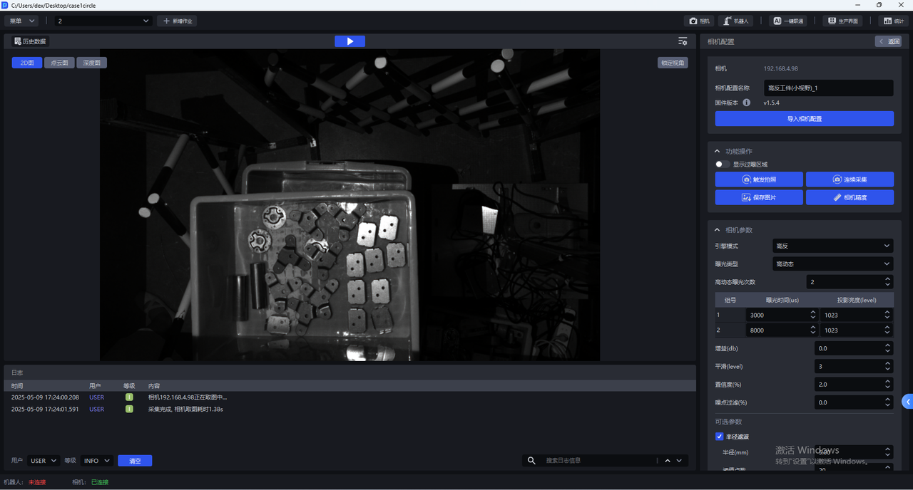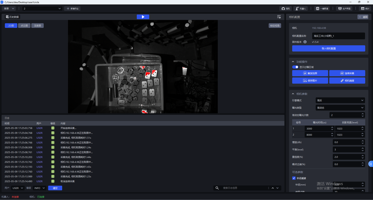 硬件上属于2D,所以调参调的其实是2D相机的曝光、白平衡之类的参数,只有曝光调好了,后续的成像质量和精度才能得到保障。