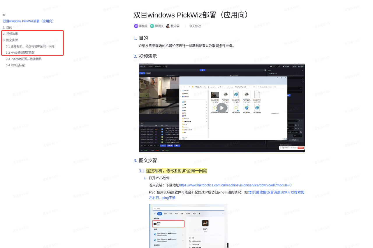 双目windows PickWiz部署(应用向)(内部),参考链接文档内演示视频或3.1~3.2部分内容