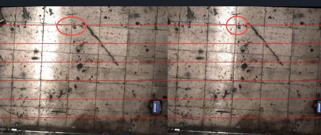 rectify:基线矫正,将两张2D RGB图对齐的过程,可视化为红线图,可以看到红圈内红线在两张图上穿过了同一个点