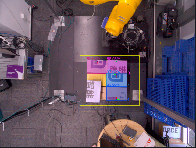 适用于纸箱单拆场景。光照条件不佳、颜色纹理相近、紧密堆叠、交错堆叠或遮挡等因素可能导致模型难以区分纸箱的上层和下层的纹理差异,因此容易误检测。