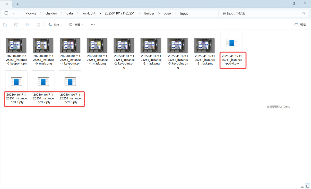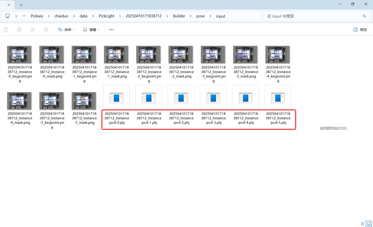 (6)测试数据(提供历史数据用于后续练习,可使用历史数据中foreground\input文件夹中的2D图像和3D点云替代相机取图来配置ROI)