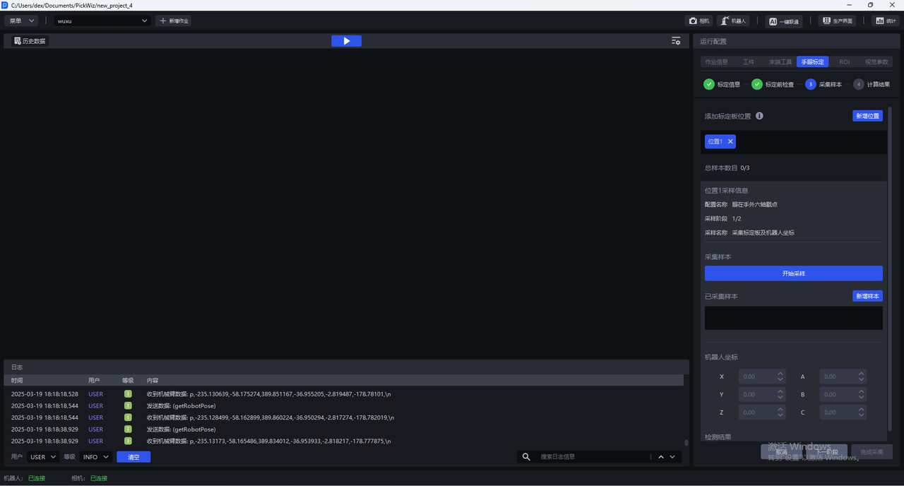 在标定采样阶段,系统默认采用单一位姿校准模式,但在特定应用场景中可扩展为多位置标定策略,提升了复杂工况下的标定鲁棒性与系统适应性: